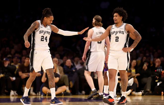 这样的阵容即便是对上雷霆,也可以说丝毫不怵,雷霆队除了亚历山大、杰威和切特三大核心之外,其他球员实力是能算平平,而马刺队目前替补席上坐着的哈珀、KJ,在其他球队完全可以往核心方向培养。